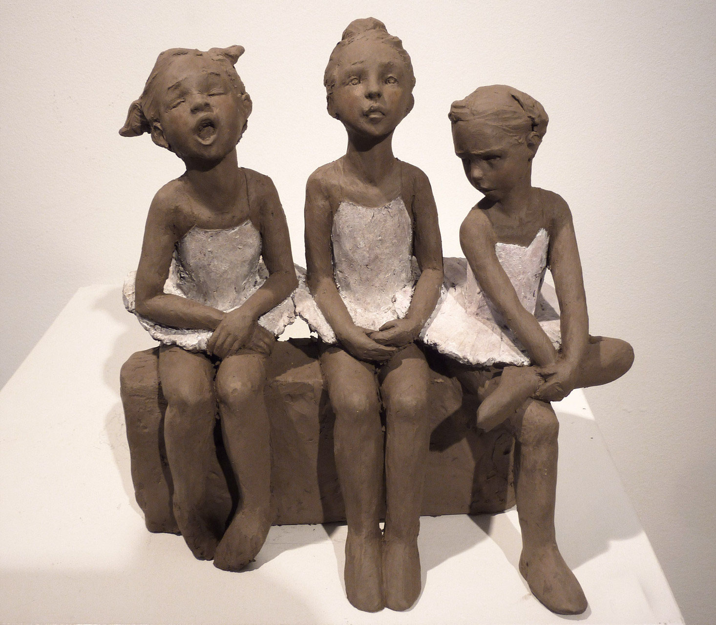 Elle modèle de petits personnages, des enfants, dans des attitudes et des activités variées.
